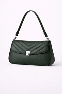 The clean, elongated shape sits comfortably on the shoulder, while the subtle front strap detail with a polished metal accent adds a quiet, sophisticated statement. Lightweight yet spacious enough for daily essentials, it transitions seamlessly from day to evening.